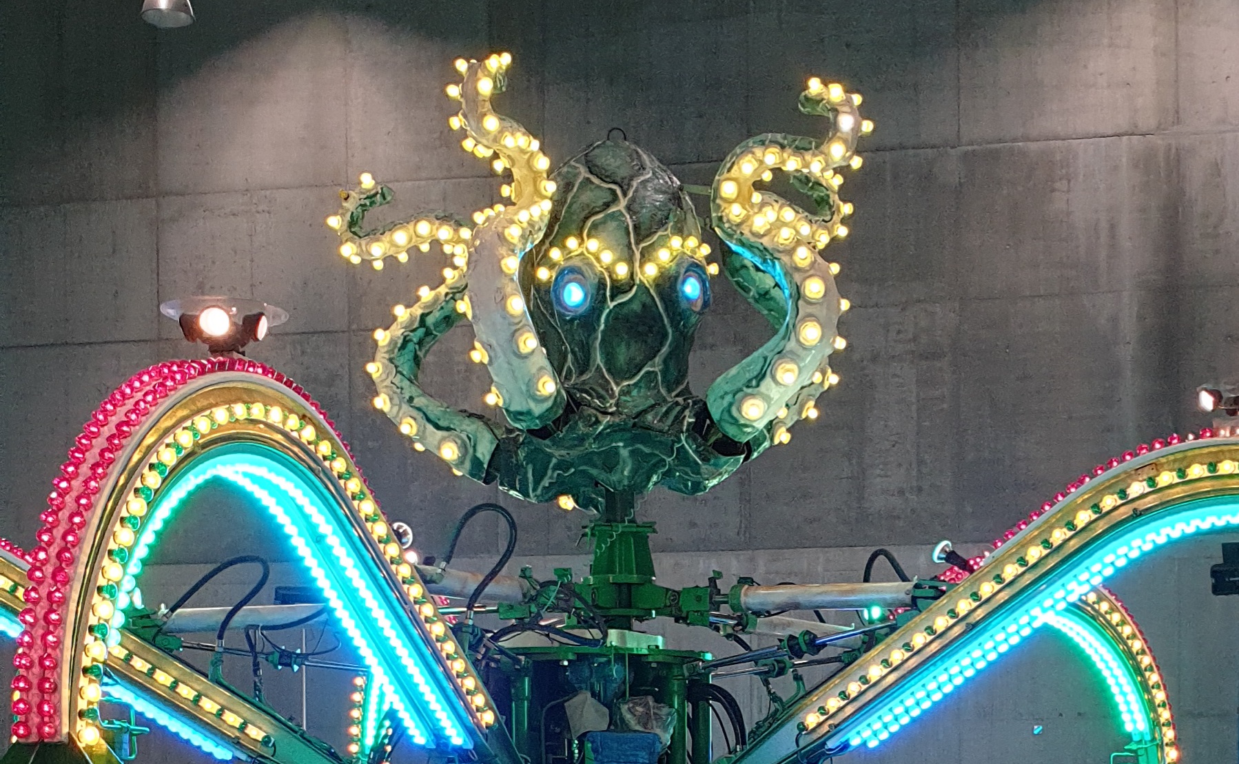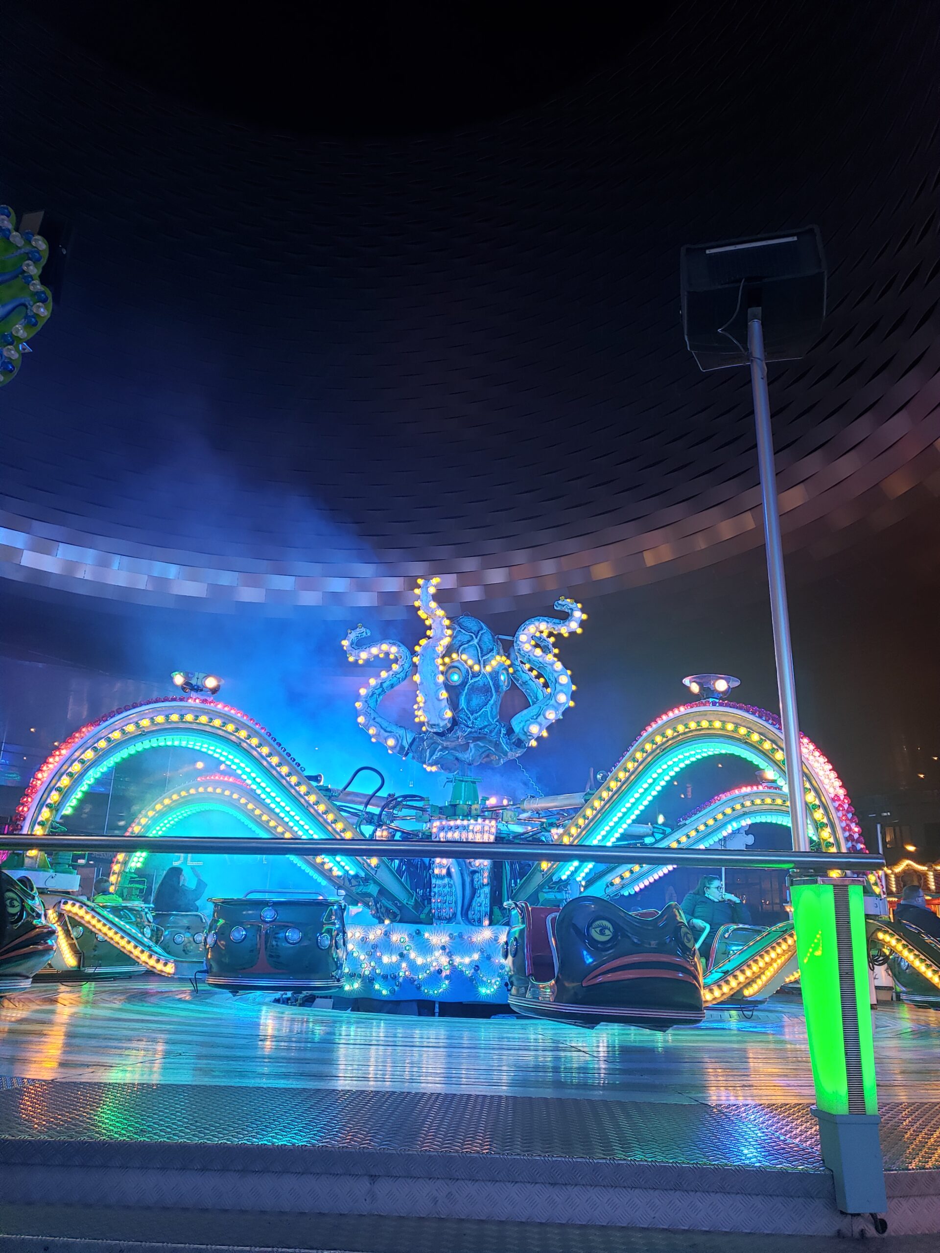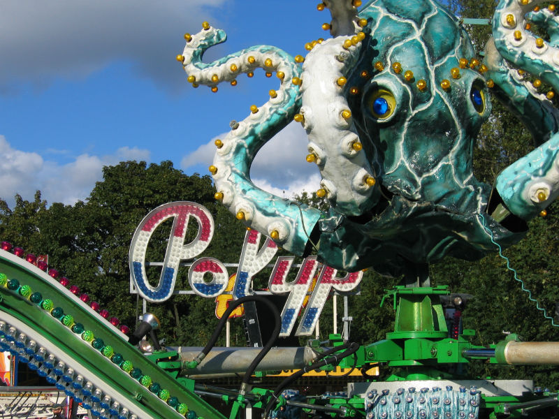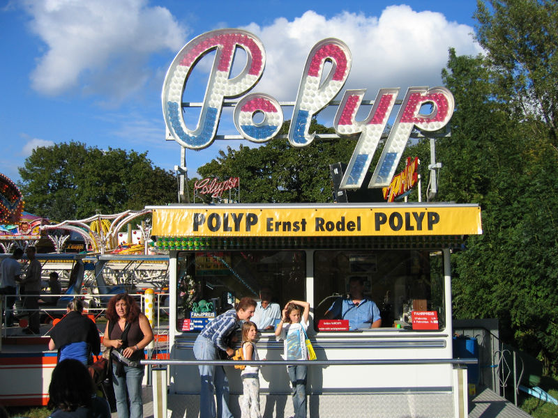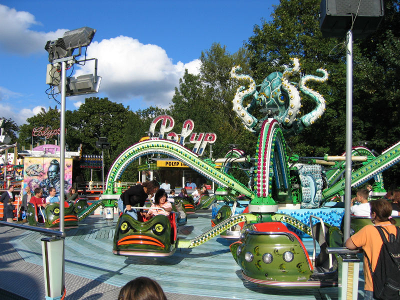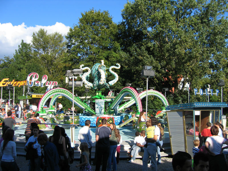 TECHNISCHE INFOS Durchmesser:20 mHöhe:8 mKasse:3 x 5 mAnschlusswert:80Kw / 125 Amp. Der Polyp das tanzende Karussell.Ein Spass für die ganze Familie.(Der grösste Polyp der Schweiz). Das Fahrgeschäft mit den meisten Bewegungen.