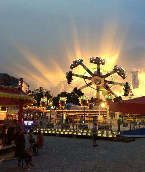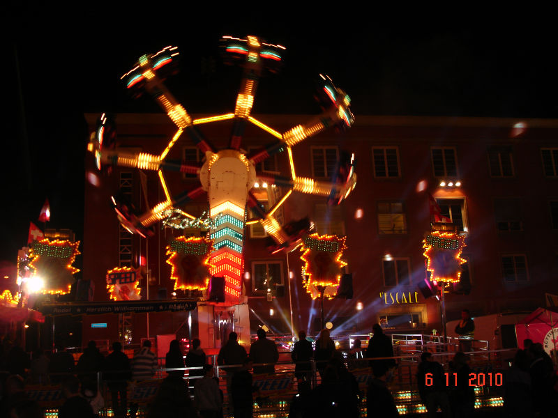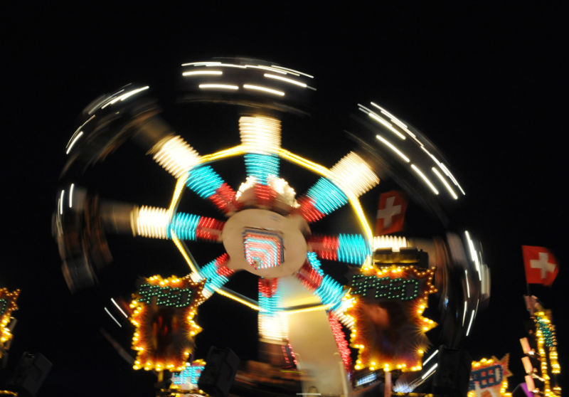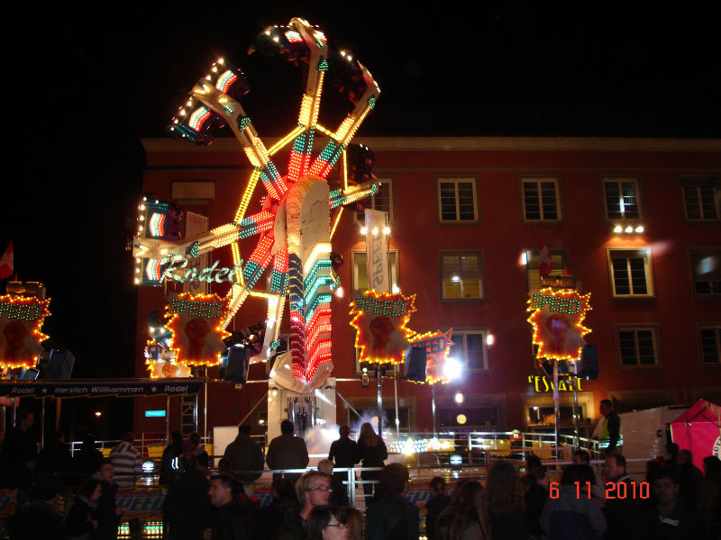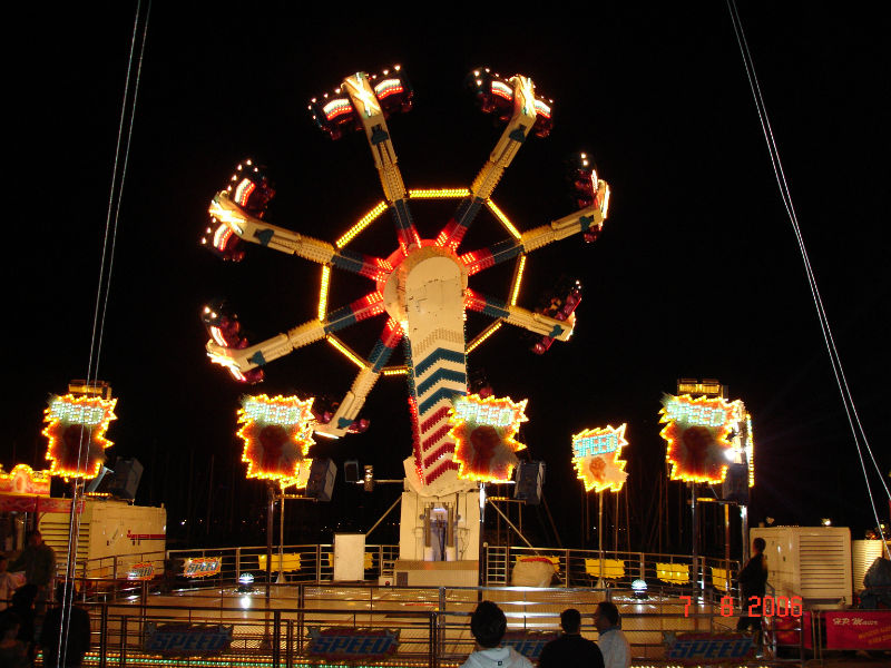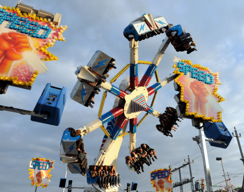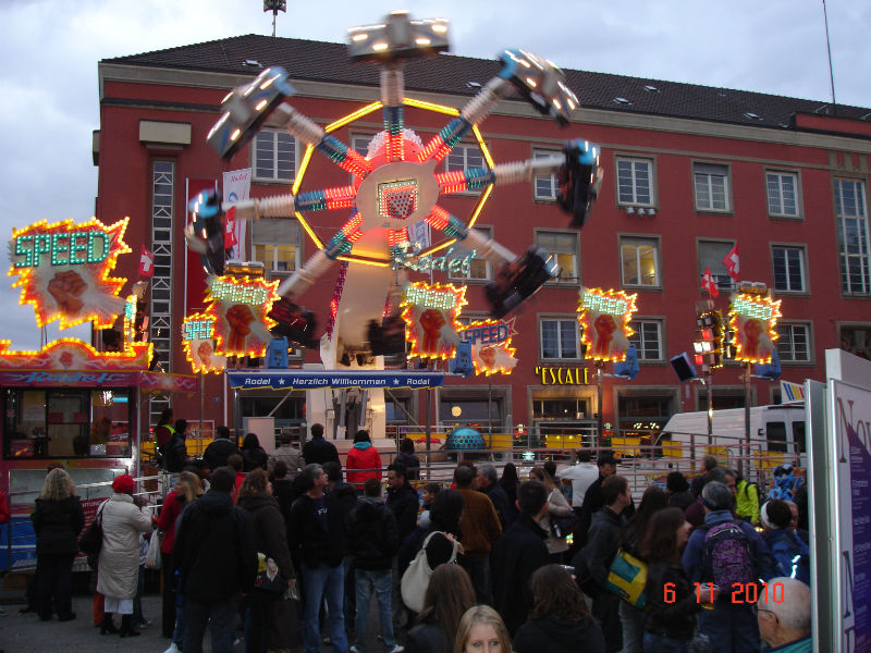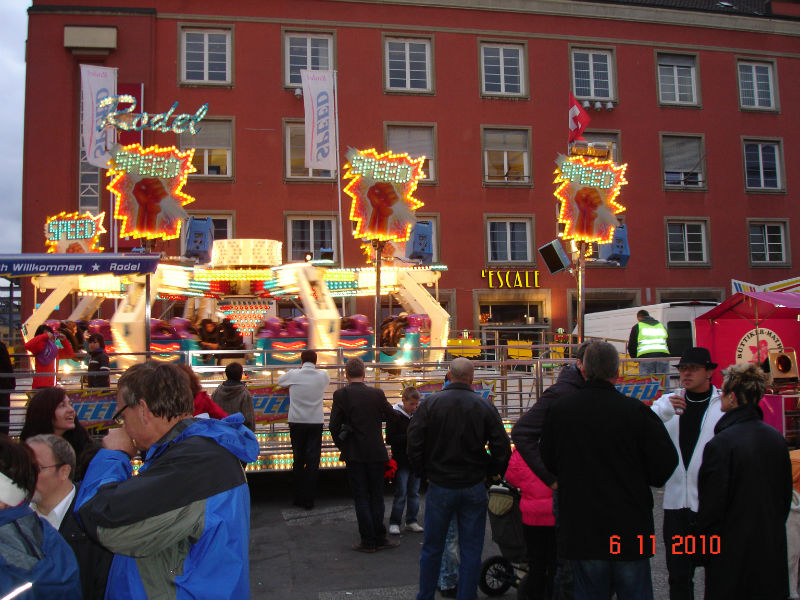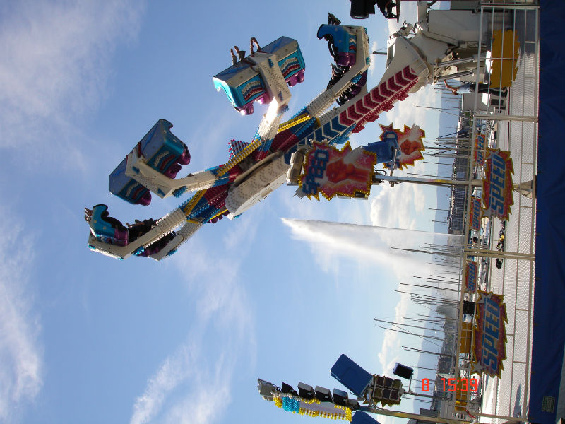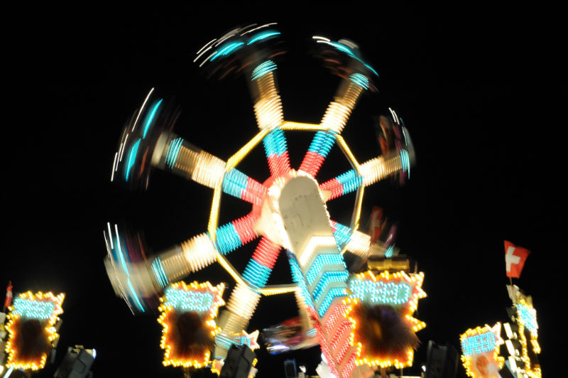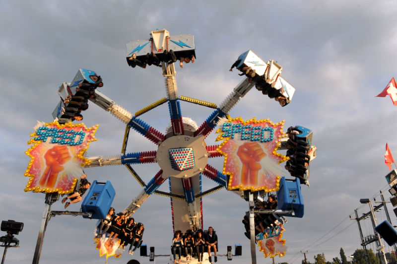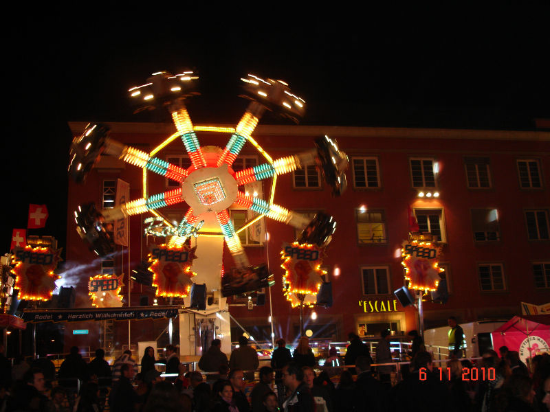 Das Überkopffahrgeschäft SPEED mit rasanter Fahrt. Durch die Neigung der Gondeln nach hinten bei steigendem Tempo ergiebt das ein angenehmes Fahrgefühl. Oben angekommen dreht sich das Rad über Kopf. Einen kurzen Zwischenhalt ist nicht ausgeschlossen, damit man die Aussicht geniessen kann. Maximale höhe ist bei 16 Meter.